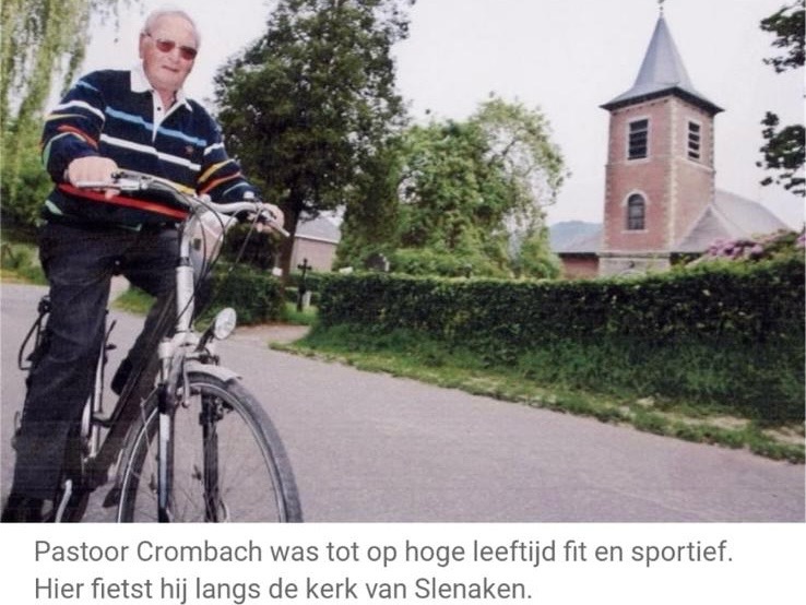 Crombach werd in 1921 geboren op een herenboerderij in Cottessen. Hij zou zijn hele leven een boerenzoon blijven, stelt Wiel vast: „Hij studeerde naast theologie ook biologie. Zijn eindscriptie ging over, geloof het of niet, kunstmatige inseminatie bij koeien. Aanvankelijk gaf hij ook les aan het Bisschoppelijk College in Weert. Voor hem was die benoeming in Slenaken een geschenk uit de hemel, hier voelde hij zich meteen thuis.”